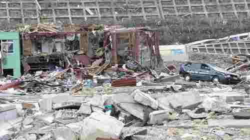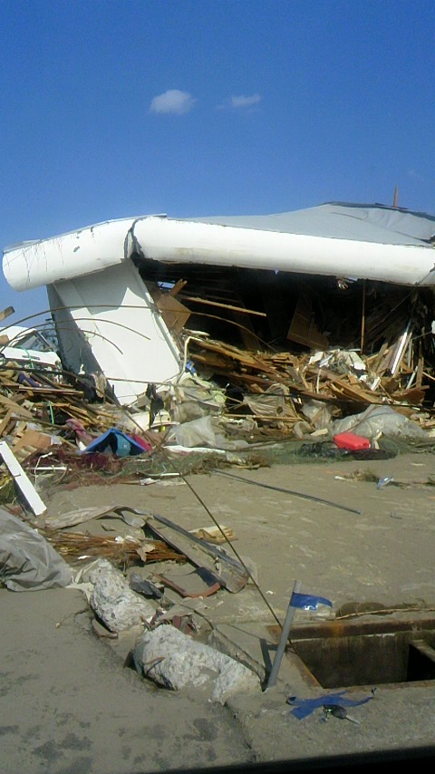 ※写真は被害が大きかった荒浜地区です。迅速に道路整備がされておりますが、家屋等は